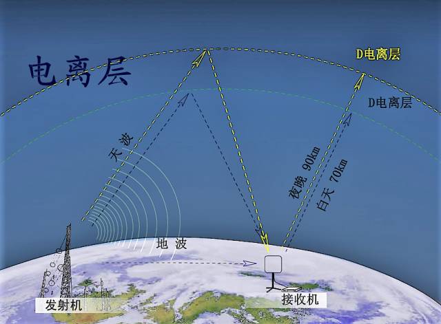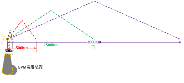 长波授时系统的信号通过地波和天波传播。地波传播是通过大地传导无线电信号,信号稳定,授时性能可靠;天波传播是靠电离层反射,由于夜晚电离层高度高于白天,因此天波传播路径有昼夜区别,授时性能较差。一个长波授时台信号的覆盖范围地波约1000千米,天波≤1500千米。我国的长波授时系统覆盖范围为我国内陆及近海海域,定时精度为微秒量级。利用长波(低频)进行时间频率传递与校准,是一种覆盖能力比短波强,校准的准确度更高的授时方法。