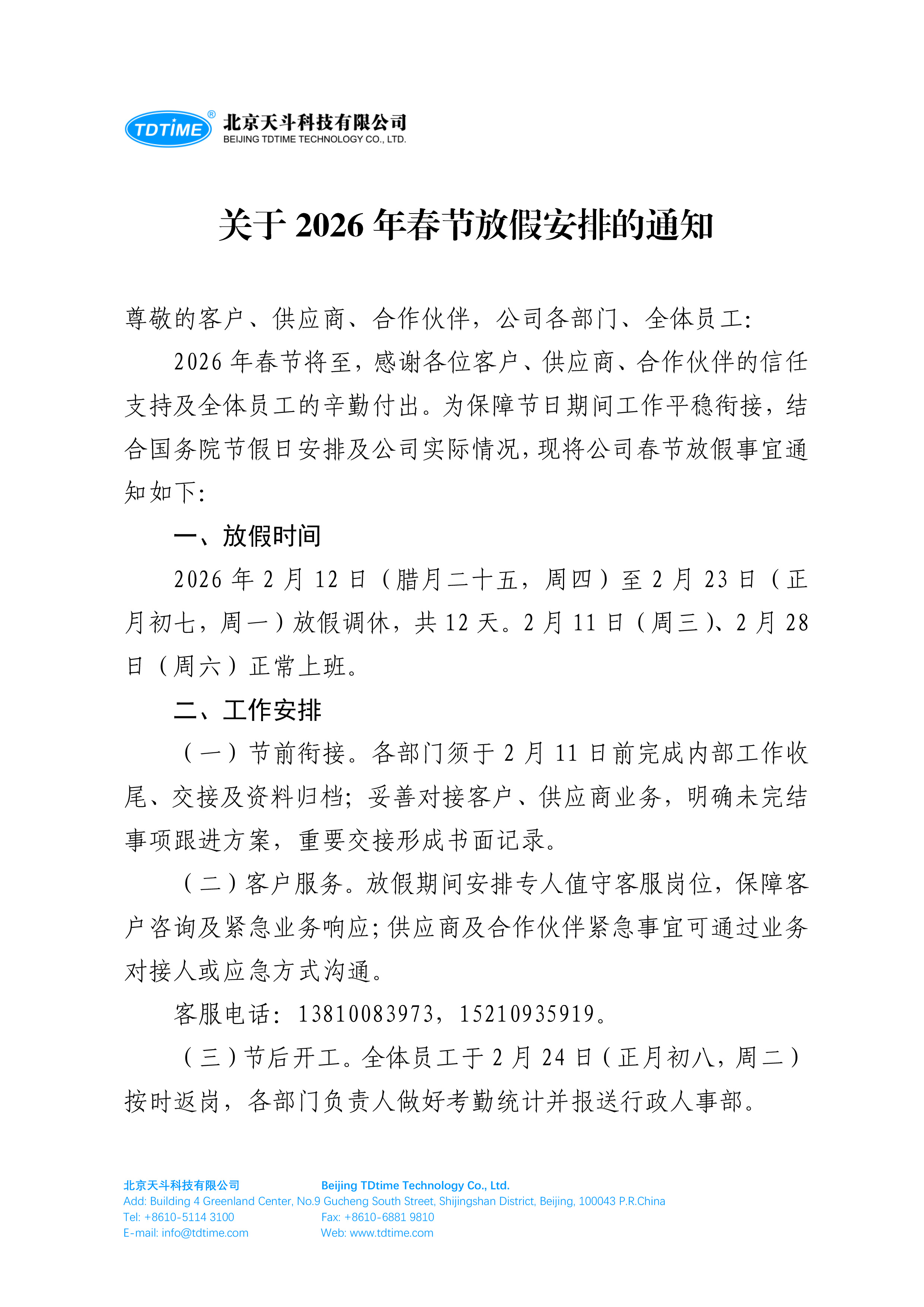 【春节】关于2026年春节放假安排的通知